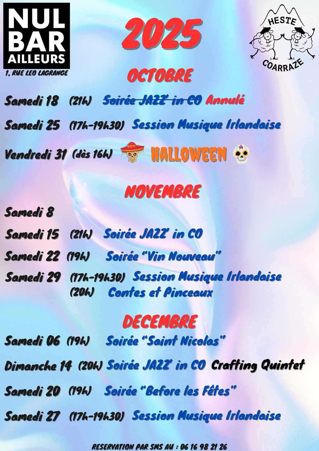 Voici le programme des animations au "Nul Bar Ailleurs" pour le 4 ème trimestre 2025